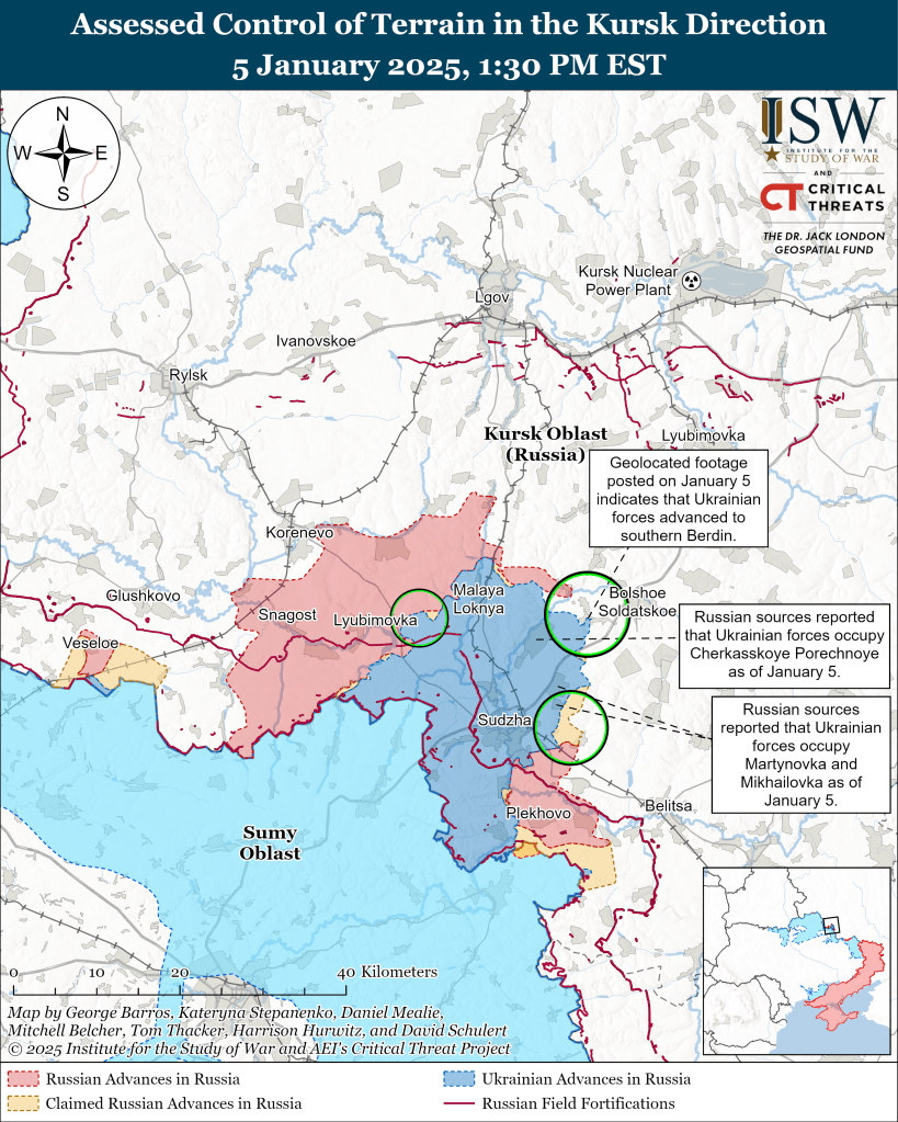 Russian and Ukrainian forces engaged in intense combat in Kursk Oblast and surrounding areas on January 5, 2025 beyond the new Ukrainian Offensive.