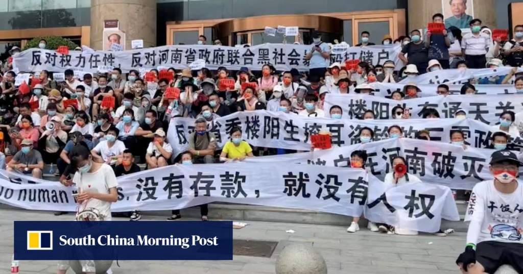 Protesters asking for their deposited funds back – often banks promise they will and then just don’t, there is little recourse for ordinary Chinese to force the issue.