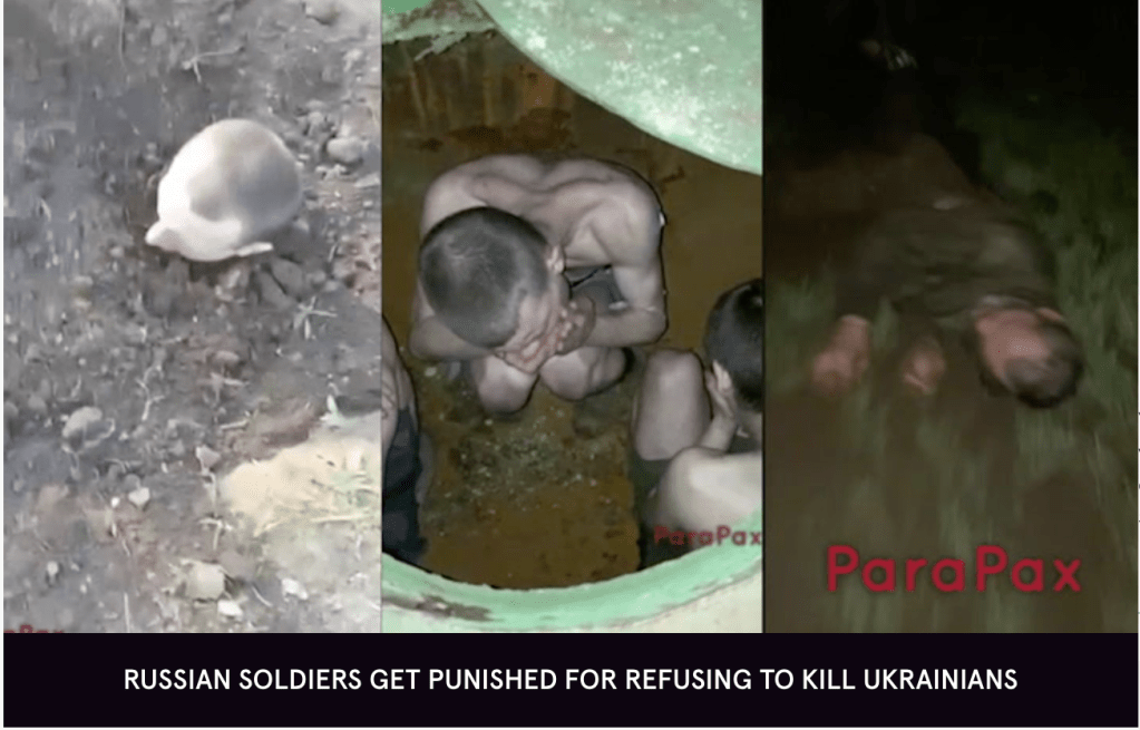 Soldiers, feeling aggrieved at why they aren’t being recognized, of strong enough character to ask, soon find themselves being silenced. Cases of violent physical abuse, being tied up and urinated on, kicked in the neck and back – an especially common punishment, are all too frequent. Those who are injured – even more so after a beating, find themselves on the way to an assault unit. If they refuse to go they get more beatings, and if the weather is cold and the soil damp enough, they’re made to dig a hole deep enough to kneel in, which is then filled in with them in it, up to their necks. They’re then fed other men’s shit and urine for up to a week or until they die.